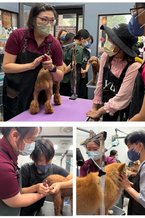 本次活動內容涵蓋寵物美容工具認識、基礎梳理技巧教學,以及專業美容師現場示範清潔、修剪與安撫流程,並安排實作體驗,讓參與者實際操作,深入了解寵物美容師之工作內容與所需專業能力。現場氣氛熱絡,參與者透過與毛孩互動,在輕鬆愉快的環境中學習職場技能,體會寵物美容工作所需的耐心與細心。